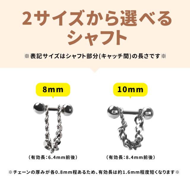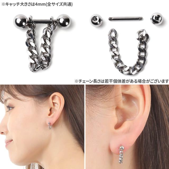 チェーンチャーム ストレートバーベル 16G 18G サージカルステンレス イヤーロブ ヘリックス 軟骨ピアス ボディピアス チェーン チャーム