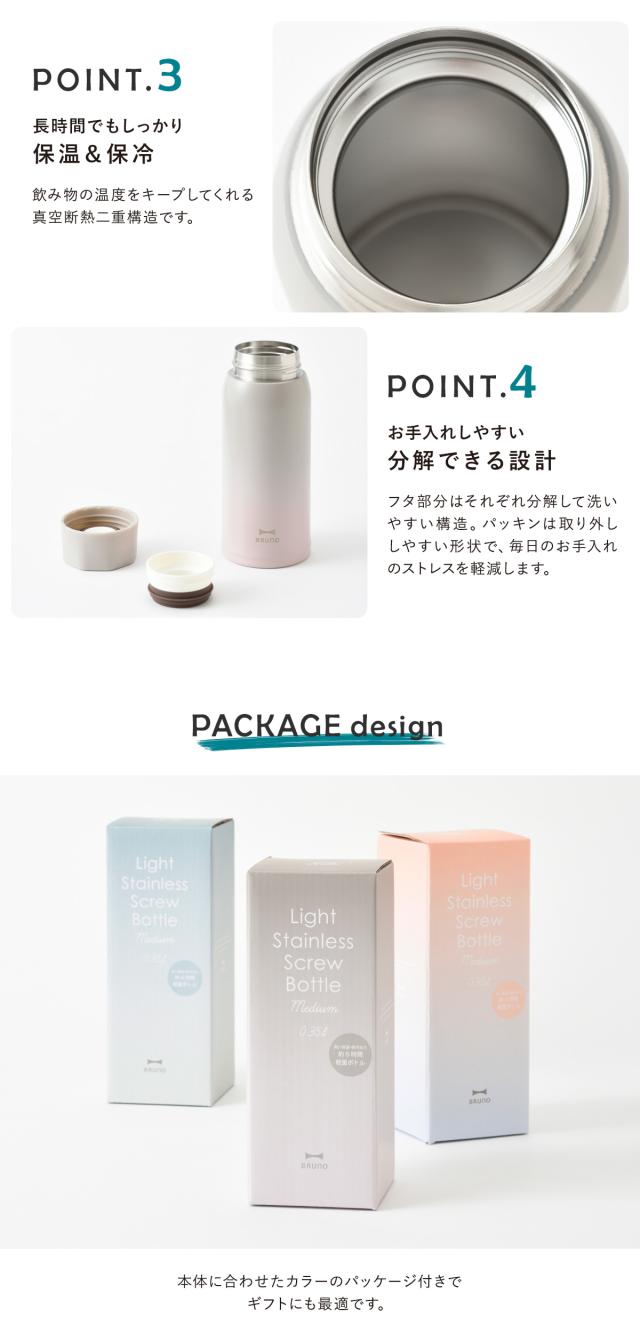 【レビュー投稿で+5%還元】ブルーノ 水筒 ステンレスボトル 350ml 軽量 BHK271 BRUNO|ステンレス スクリューボトル medium ステンレスボトル タンブラーボトル マグボトル 真空保温 保冷 キッチン雑貨 おしゃれ かわいい クリスマス_mp
