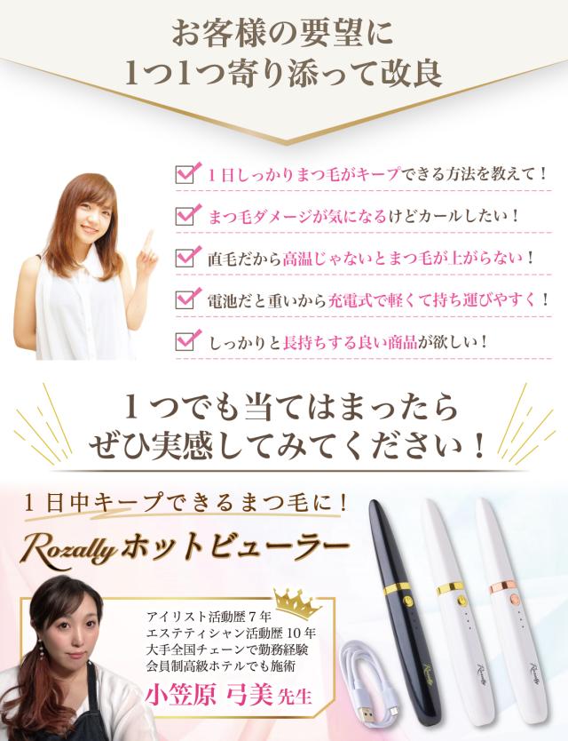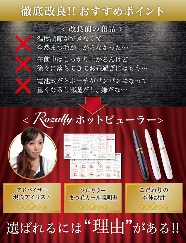 Rozally ホットビューラー がついに正式販売開始。 まつ毛 の カール の時短アイテムとして今注目されている usb充電 タイプ の” ホット ビューラー ”です。