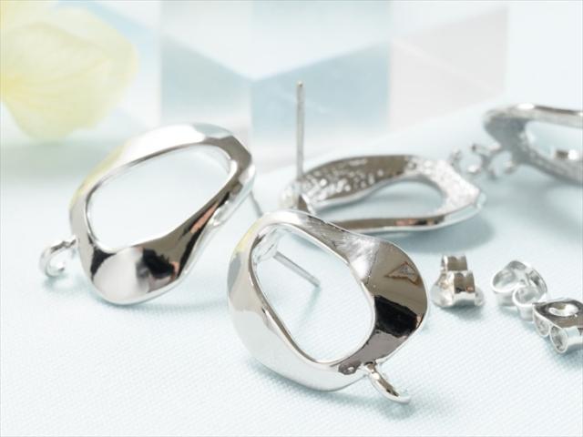ピアスパーツ 316L ステンレス 変退色防止加工済 ユニークフレーム アクセサリー パーツ シルバー 20mm 10ペア 金属アレルギー対応 問屋