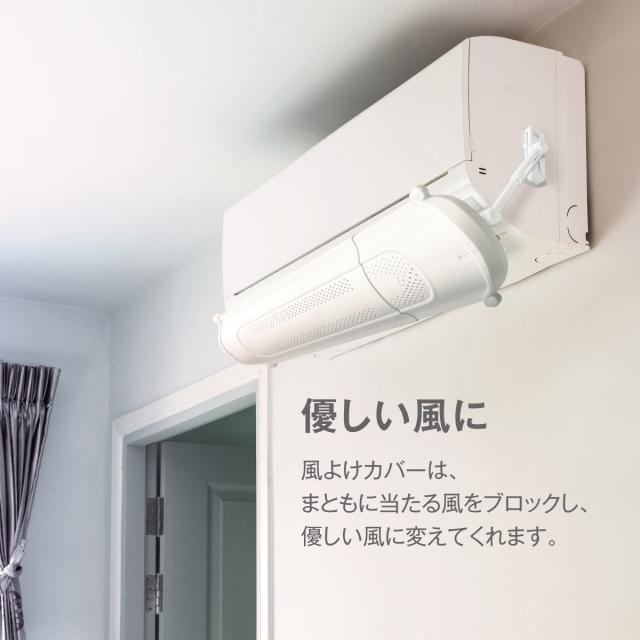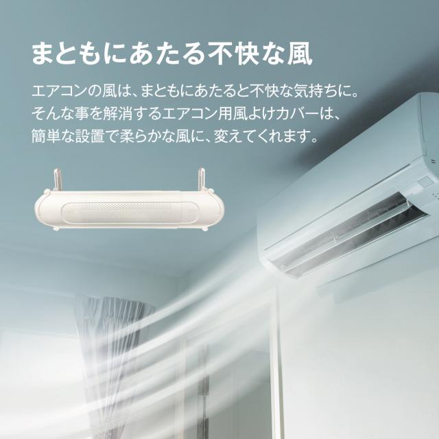 【まともにあたる不快な風】エアコンの風は、まともにあたると不快な気持ちに。そんな事を解消するエアコン用風よけカバーは、簡単な設置で柔らかな風に変えてくれます。