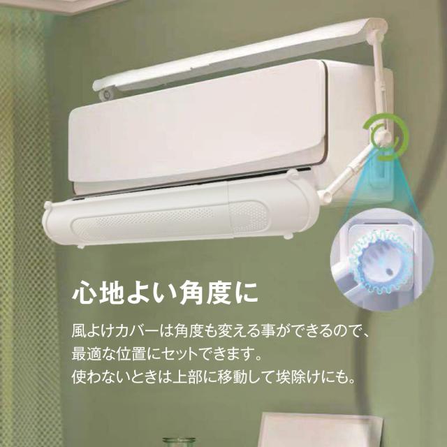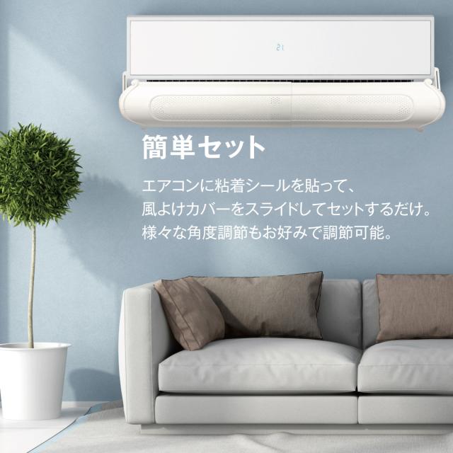【簡単セット】エアコンに粘着シールを貼って、風よけカバーをスライドしてセットするだけ。様々な角度調節もお好みで調節可能。