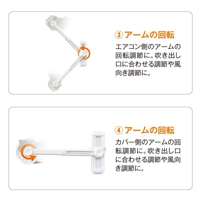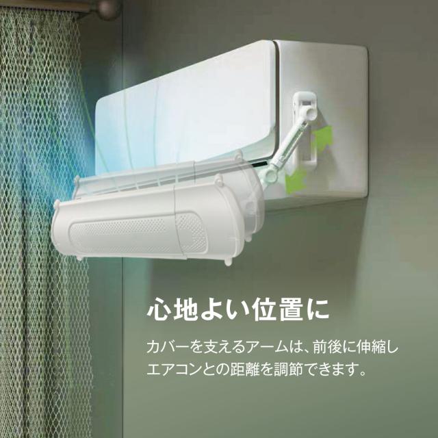 【心地よい位置に】カバーを支えるアームは、前後に伸縮しエアコンとの距離を調節できます。