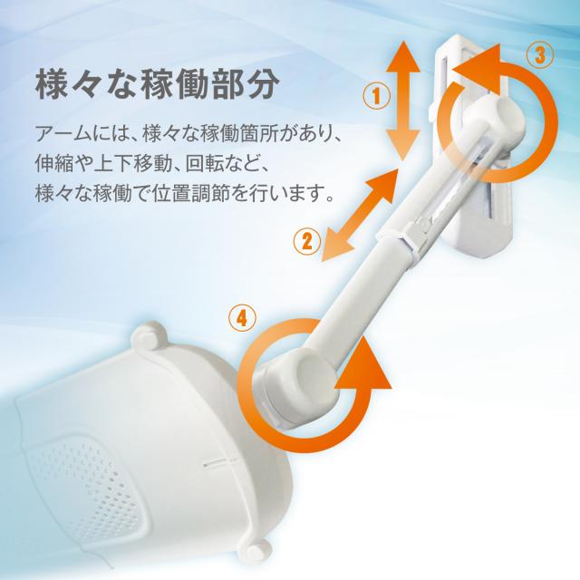 【様々な可動部分】アームには、様々な稼働箇所があり、伸縮や上下移動、回転など、様々な稼働で位置調整を行います。