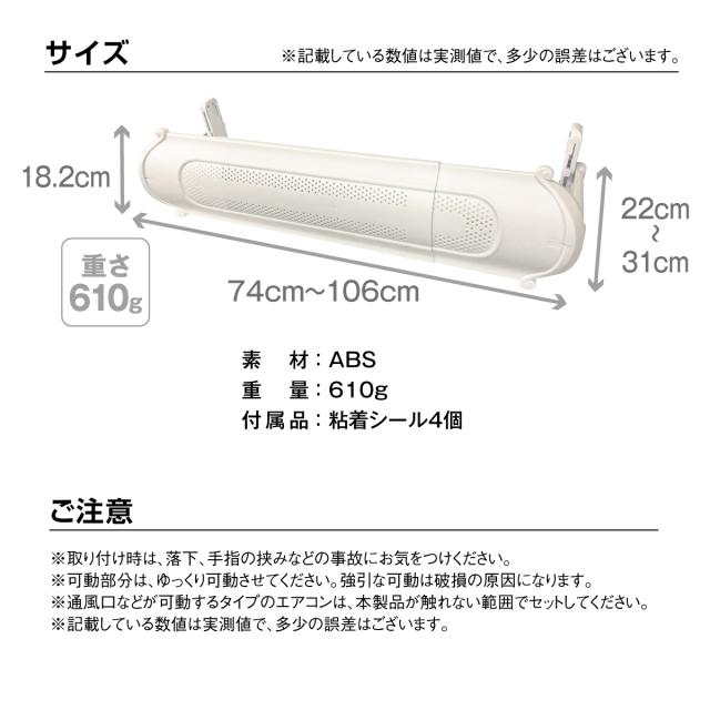 エアコン 風よけカバー 最長103cm スリム 風除け 長さ調整 空気循環 冷房 暖房 クーラー ac-cover01