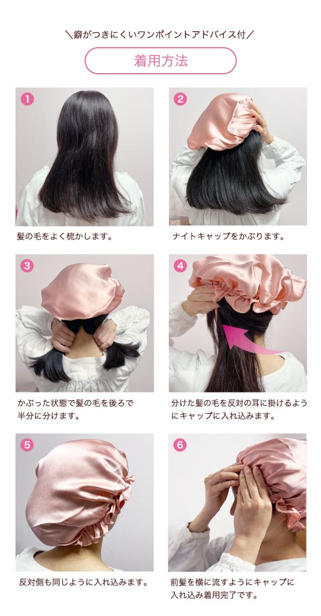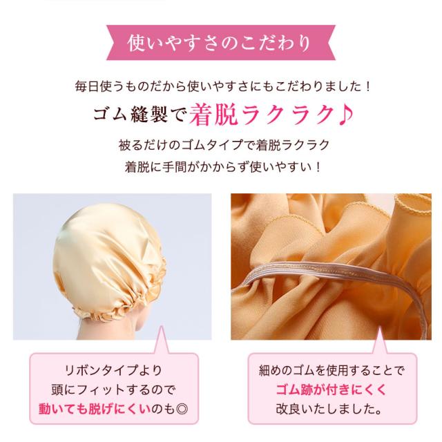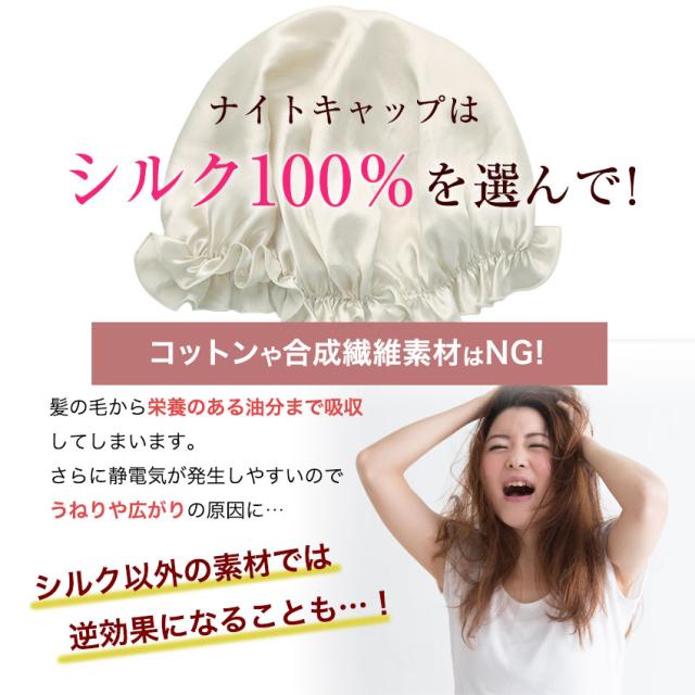 そこで!シルク100%ナイトキャップで摩擦から髪の毛を守り、しっとり保湿。