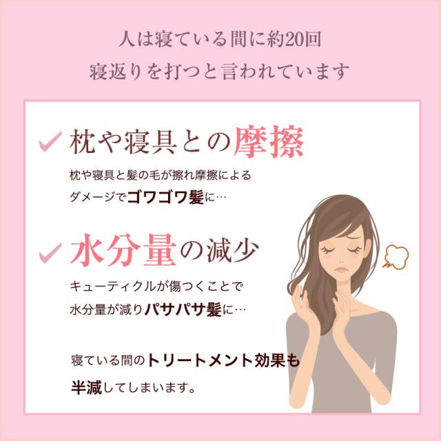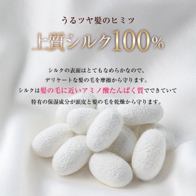 シルクの表面はとても滑らかなのでデリケートな髪の毛を摩擦から守ります。