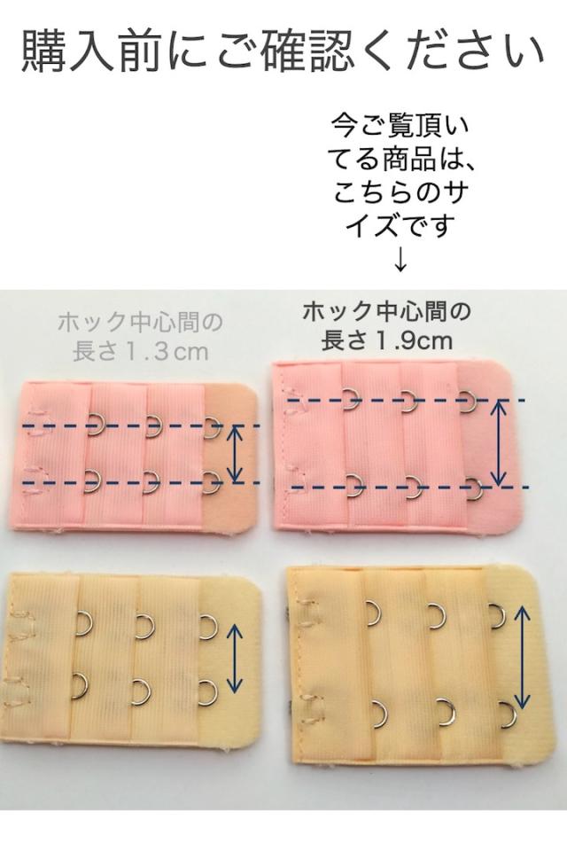- ホックの間 1.9cmと分かりやすく書いてあったので安心して購入できました。つけ心地も良く、6色でこのお値段は嬉しいです