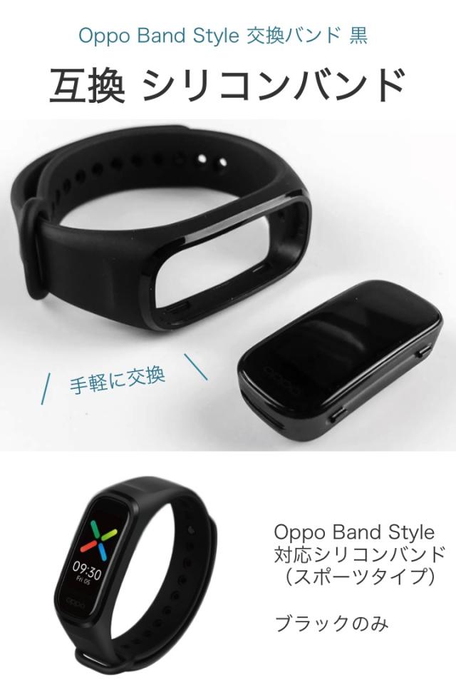 OPPO Band Style 交換バンド 黒 シリコン ベルト 互換 交換 予備 消耗 オッポ スマートウォッチ 耐水 シンプル ストラップ 軽量 簡単 替え 手首 交換ベルト シリコンバンド 固定 手首 OPPO
