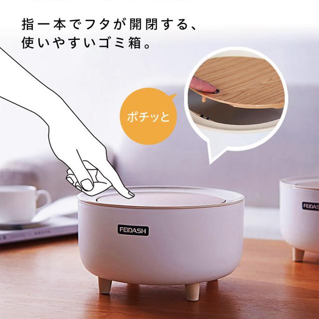 ゴミ箱 ごみ箱 木目調 ミニ ダストボックス ワンタッチ 2L 2リットル 北欧風 おしゃれ デスク テーブル リビング 書斎 寝室 ふた付き コンパクト スリム dustbox06