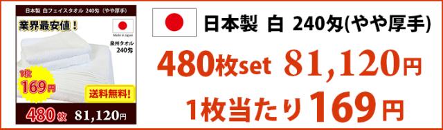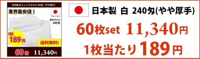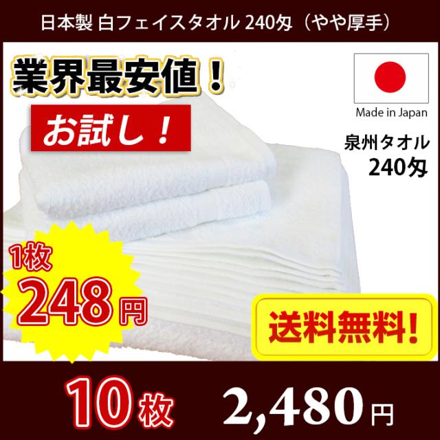 【送料無料】業界最安値! 10枚セット 日本製 泉州 白タオル 厚手 240匁 / タオル 業務用タオル フェイス 白 ホワイト 業務用 理髪店 美容院 美容室 床屋 掃除 まとめ買い 国産