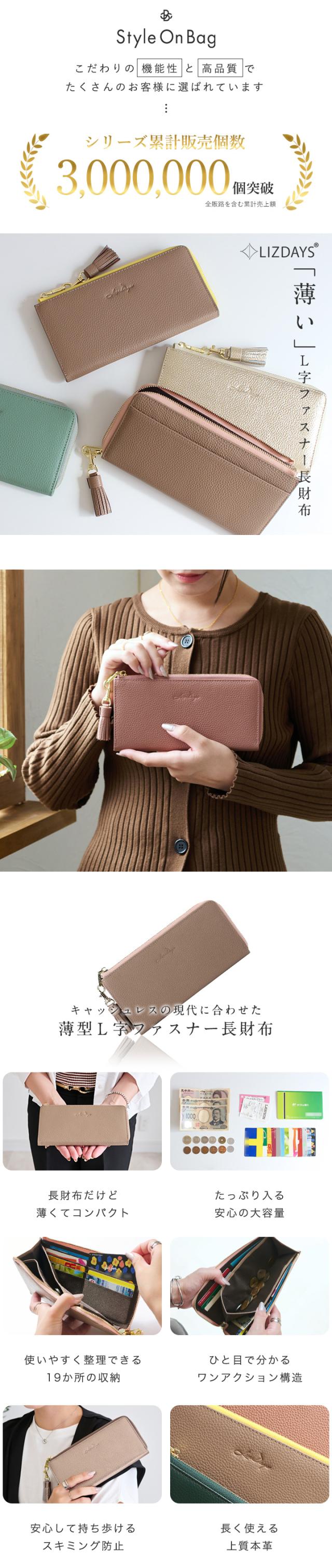 【上質牛革 ・トップレザー使用】LIZDAYS 長財布 L字ファスナー 本革 牛革 財布 薄型 薄い スリム 軽量 軽い 大容量 長サイフ レディース スキミング防止 磁気 防止 L字 薄い財布 チャーム かわいい おしゃれ 開運【lz-65105r】
