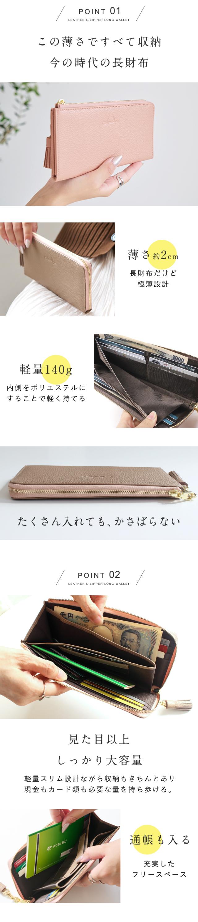 キャッシュレスの現代に合わせた薄型L字ファスナー長財布。
