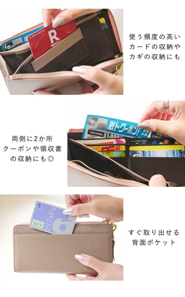 現金もカードも通帳やレシートもたっぷり入る大容量。