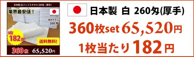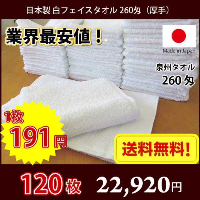 【送料無料】業界最安値! 120枚セット 日本製 泉州 白タオル 厚手 260匁 / タオル 業務用タオル フェイス 白 ホワイト 業務用 理髪店 美容院 美容室 床屋 掃除 まとめ買い 国産