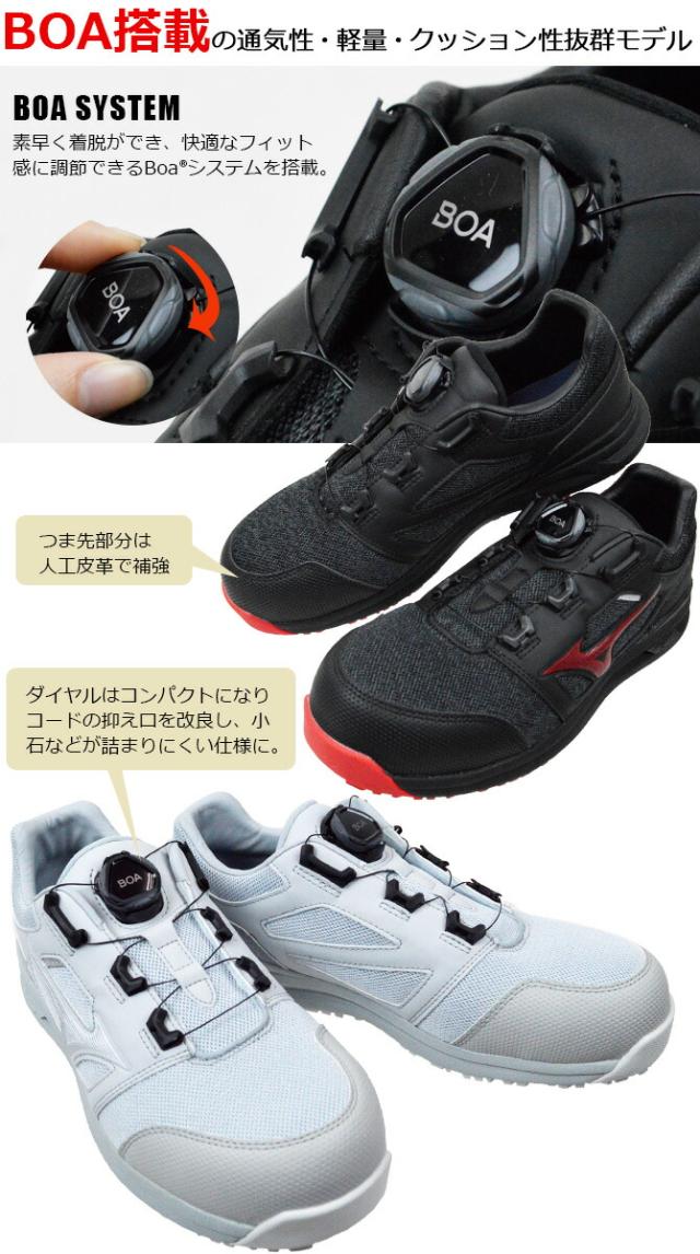 ミズノのテクノロジーを駆使したワーキングシューズ「オールマイティー」のローカットのBoa搭載モデルです。