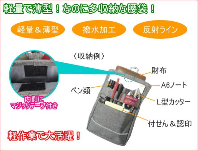 軽ワークポーチ KW-1 バック ポーチ 携帯小物入れ 腰袋 作業ポーチ 工具差し ウエストポーチ 小物入れ 腰袋 軽量 薄型 撥水加工 反射ライン