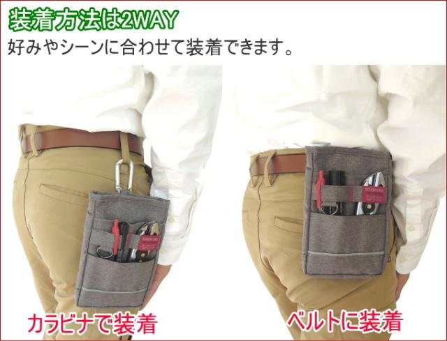 軽量で薄型なのに多収納な小物ケース。 1段目の前ポケットにはカッターやペン、付せん&認印などが収納できます。 2段目の前ポケットはA6ノートが入るサイズ。 内側にはマジックテープ付き。財布も入るたっぷり収納。 また、ねじれにくいカラビナとベルト幅約6cmまで対応したベルト通しも付いているので、好みやシーンに合わせて装着が可能です。 撥水ポリエステルを使用しているので、屋外での作業やおでかけにもぴったり! 光に反射する反射ライン付き。 |