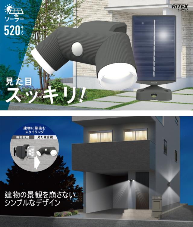 4.5W×2灯 LEDソーラーシンプルスタイルセンサーライト S-CY60 送料無料 ソーラー式 LED センサー ライト 照明 玄関 家 防犯 防災 セキュリティ エクステリア シンプル