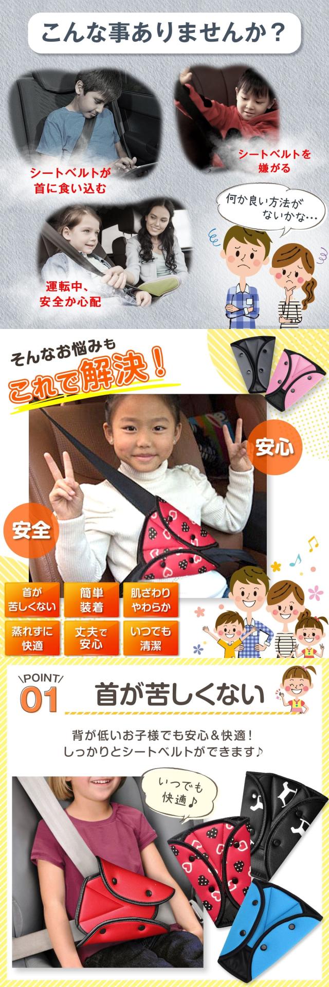 首の締め付けを解消し、しっかりシートベルトができます♪