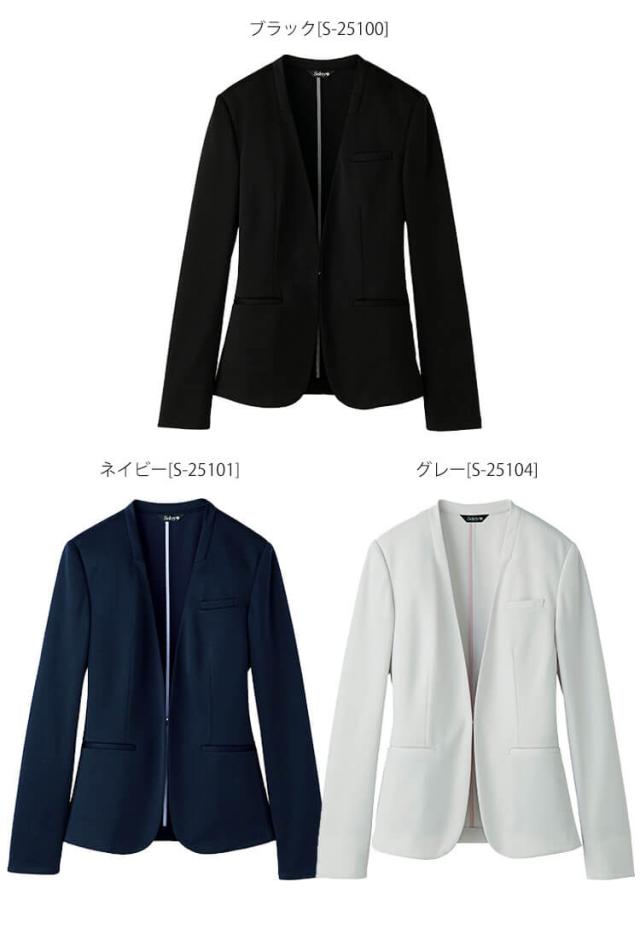 事務服 制服 オフィス セロリー selery ノーカラー 長袖 ジャケット S-25100 S-25101 S-25104 トリクシオンニット