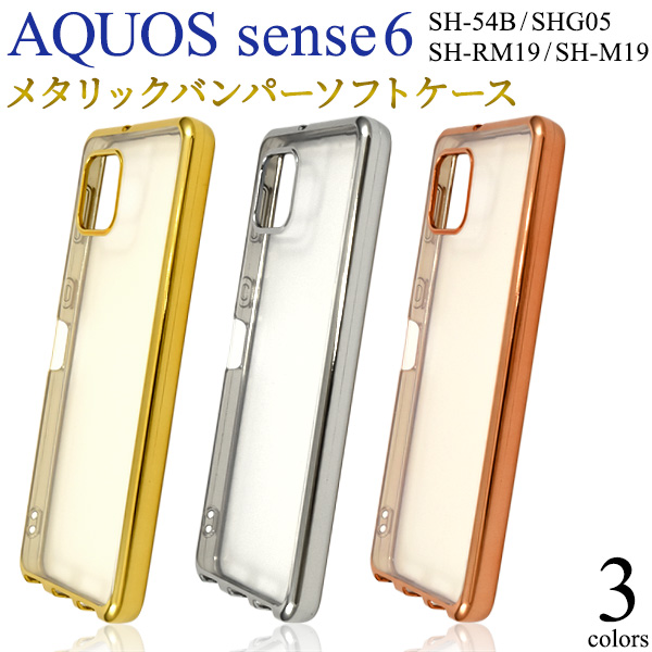スマホケース AQUOSsense6/sense6s SH-54B SHG05 SH-RM19 SH-M19 SHG07用 メタリックバンパー ソフトクリアケース シンプル 透明 背面 保護 カバー 傷防止 アクオスセンス6 aquossense6 TPU製 au docomo 楽天モバイル SIMフリー