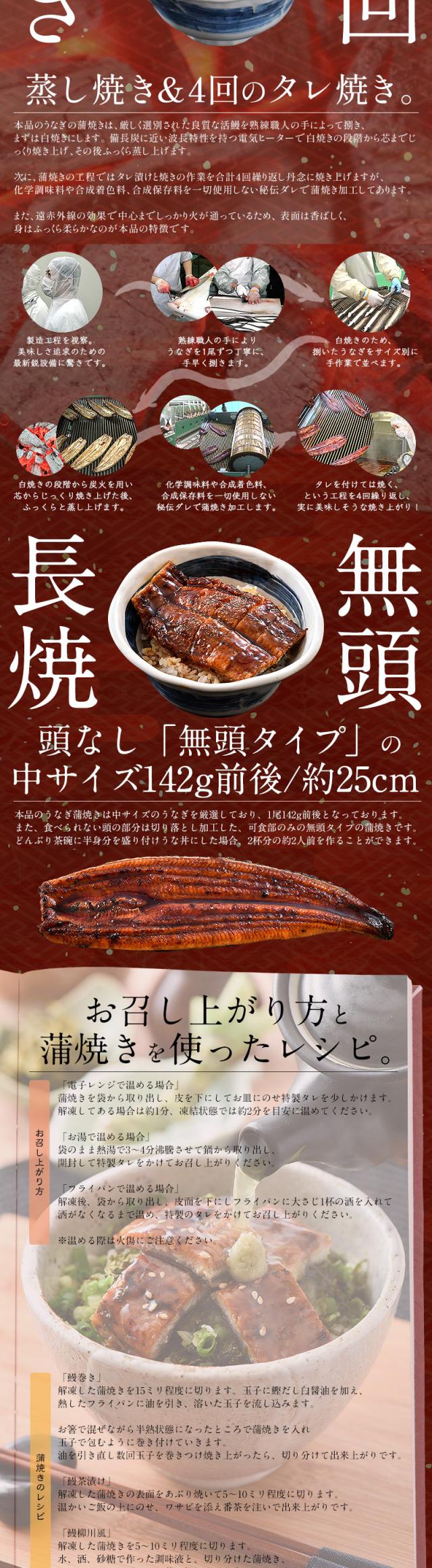 うなぎ蒲焼142g前後×2尾、タレ&山椒(タレ10g、山椒末0.2g)×2袋