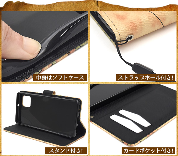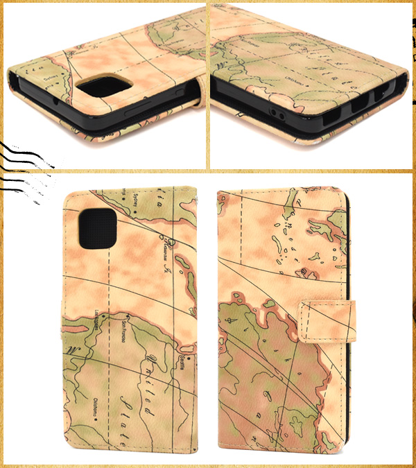 レトロな世界地図デザインがオシャレな、マップデザインの手帳型ケース!