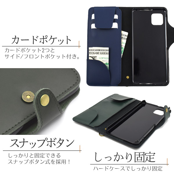 美しい質感と滑らかな触り心地の牛革を使用しています。 一つ一つ丁寧に制作しています。 実用新案登録済のカード落下防止フラップ付き! 逆さにしてもカード落下の心配がありません。 大切なカード収納時やネックストラップ使用時などに最適です。 内部ケースはハードケースなのでしっかりとスマートフォンを固定できます。 横開きタイプなので、手帳のように使うことができます。 また、内側にはカードポケット2つとフロント/サイドポケットが付いています。 しっかりと固定できるマグネット式スナップボタンを採用しています。 便利なストラップリング付きで、ストラップなどを装着可能です。 同じ色の牛革を使用したストラップ付き! 金具はアンティーク風の金古美色を採用!ナスカンなので取り付けも簡単です。 | ||||||||||||||