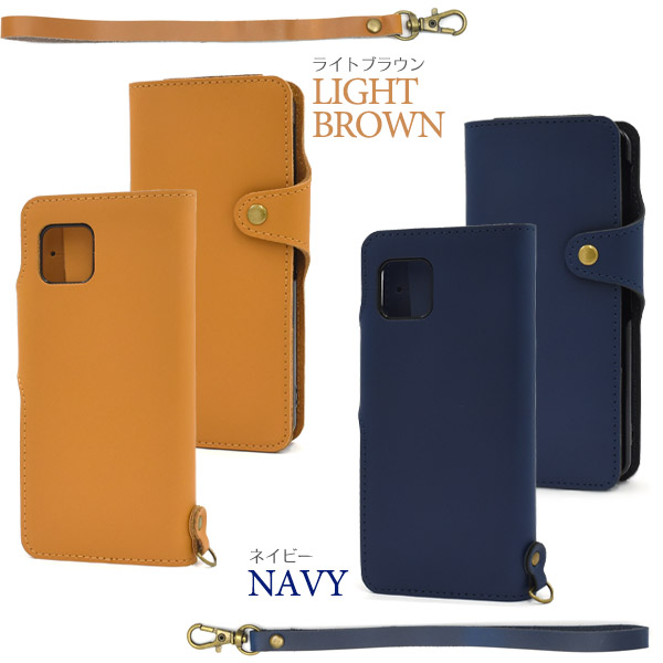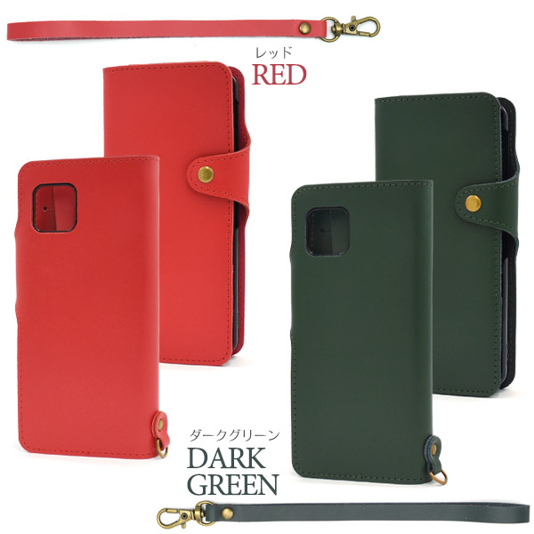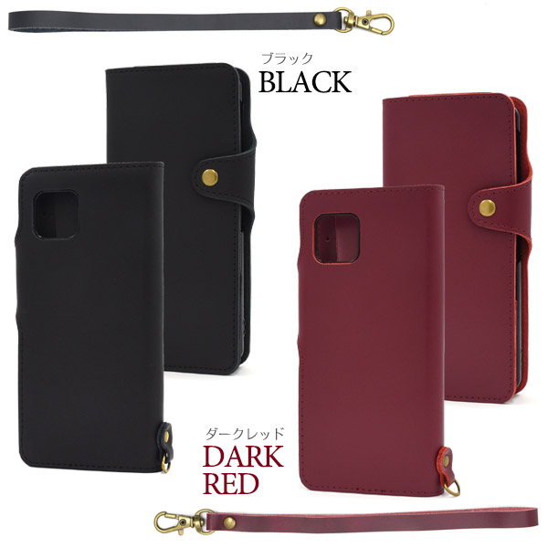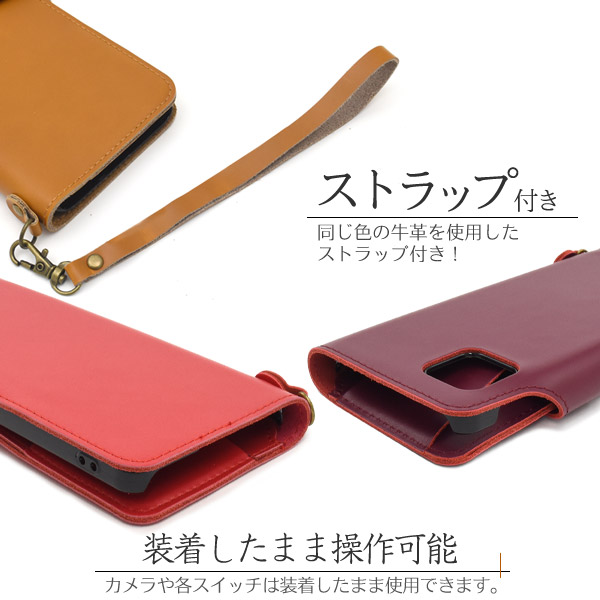 ストラップ付き 牛革 手帳型ケース