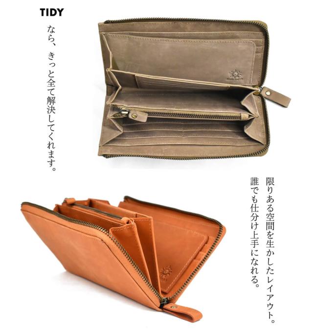 財布 TIDY Nuance Color メンズ レディース 本革 レザー L字ファスナー 革財布 シンプル 大容量 仕分け くすみカラー ハレルヤ hallelujah ラッピング ギフト プレゼント