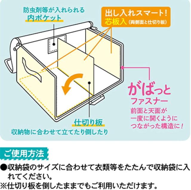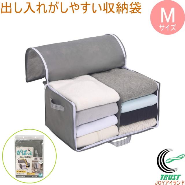 出し入れ簡単がばっと収納袋II Mサイズ 1個入 グレー 収納 収納袋 衣類 衣類収納 クローゼット 押入れ すき間 整理整頓 無地 不織布 通気性 便利 仕切り付き セーター トレーナー ジャケット 衣装ケース