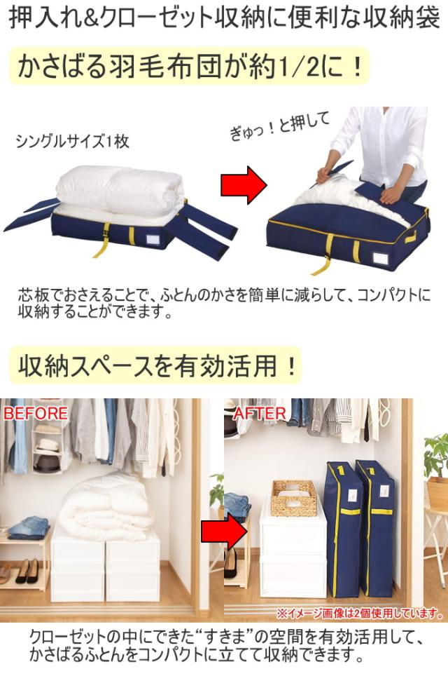 コンパクト優収納アルファ すきま用 1個入 ネイビー 収納 収納袋 ふとん 布団 羽毛布団 布団ケース クローゼット 押入れ すき間 整理整頓 不織布 通気性 便利