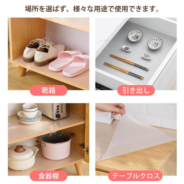 場所を選ばず、引き出し・靴箱・食器棚・テーブルクロス等、様々な用途で使用できます。