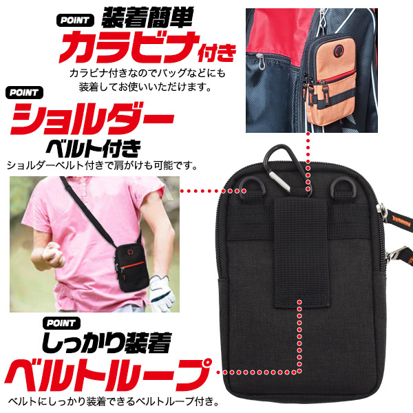 ティーやボール、サングラスなどの収納に!ゴルフベルトポーチ (ラウンドポーチ)