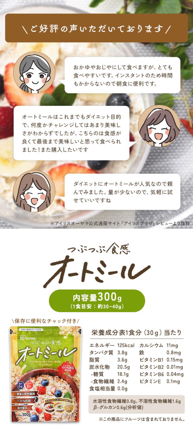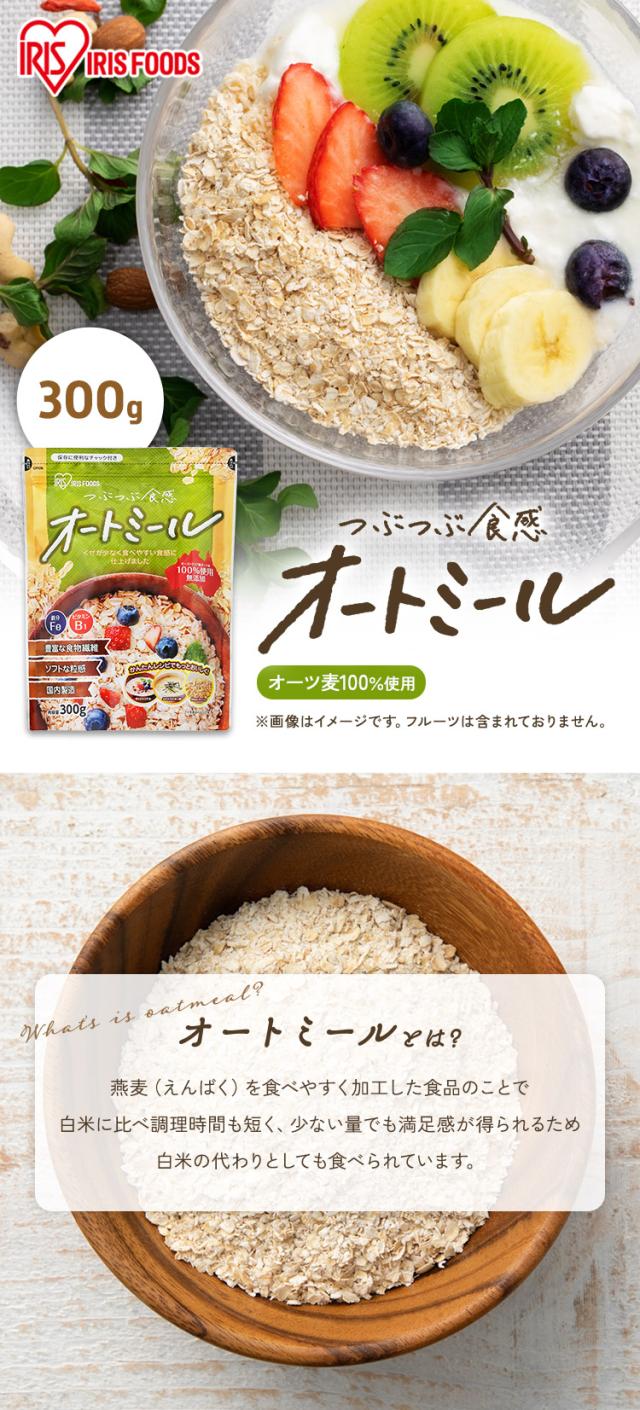 オートミール300gスタンドチャック付き シリアル オートミール 朝食 離乳食 おかゆ 食物繊維 無添加 オーツ麦 えん麦 アイリスオーヤマ