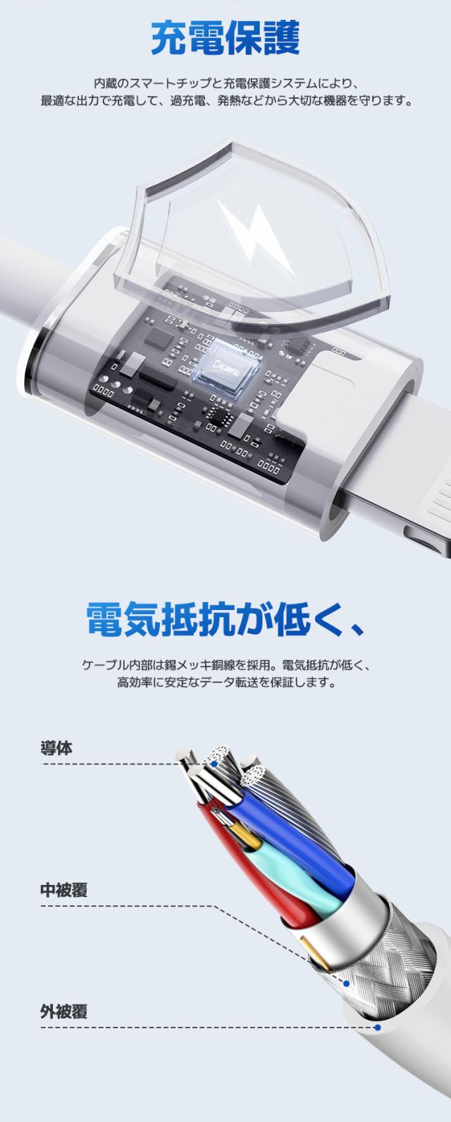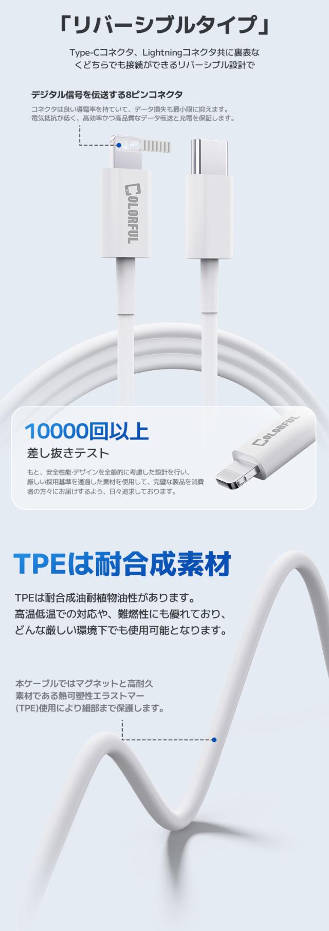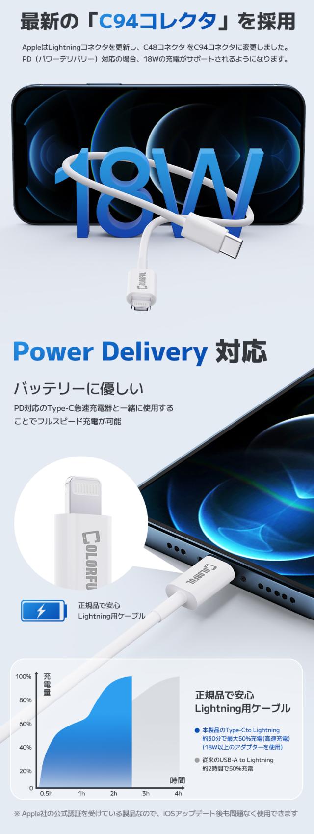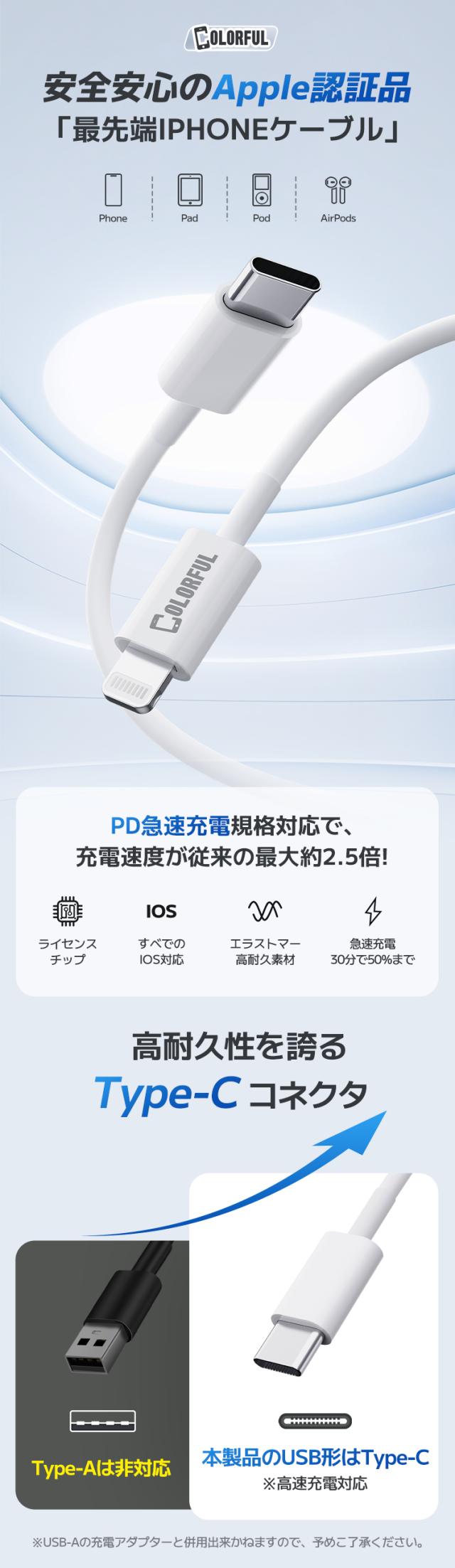 【Type-C to Lighting ケーブル】MFI認証 PD高速充電
