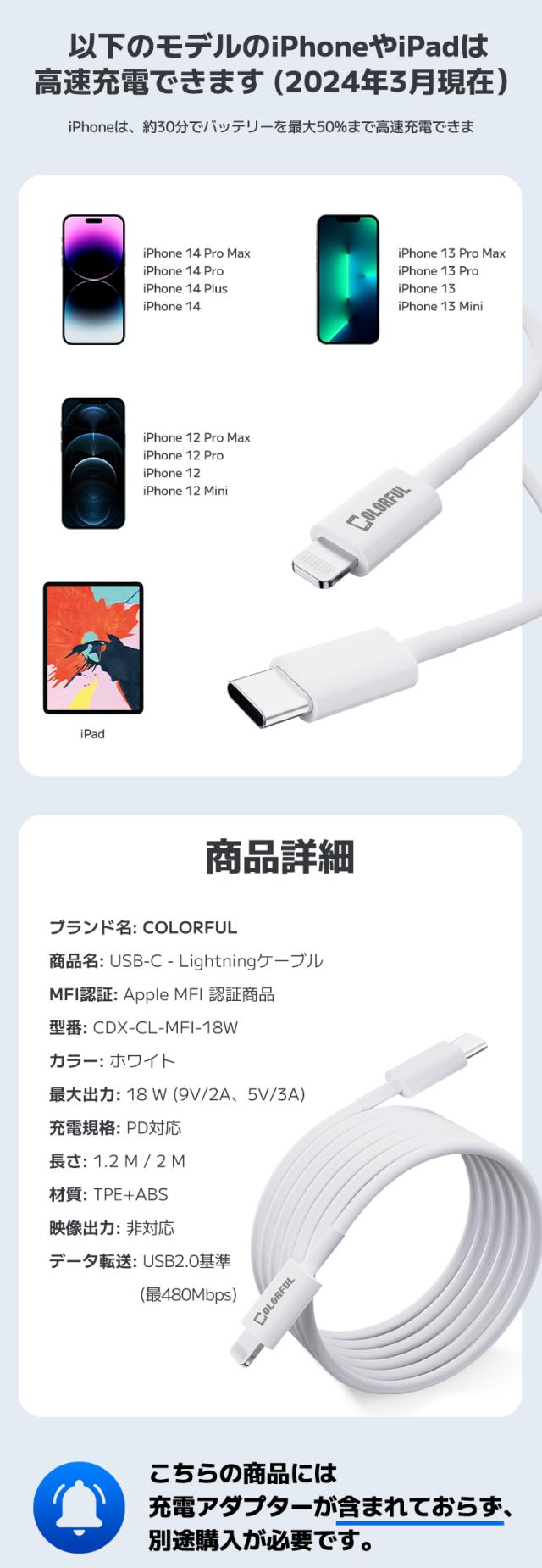 【30分で50%充電】充電ケーブル Lightning ライトニングケーブル 超高速 20W Type-C PD USBケーブル 急速充電 MFi認証 iphoneケーブル 高速 データ転送 iPhone14 Pro Max PLus SE3 13 12 Mini SE2020 11 Pro Max XS Max XR X 8 7 Plus【長さ1.2M or 2M】(白)