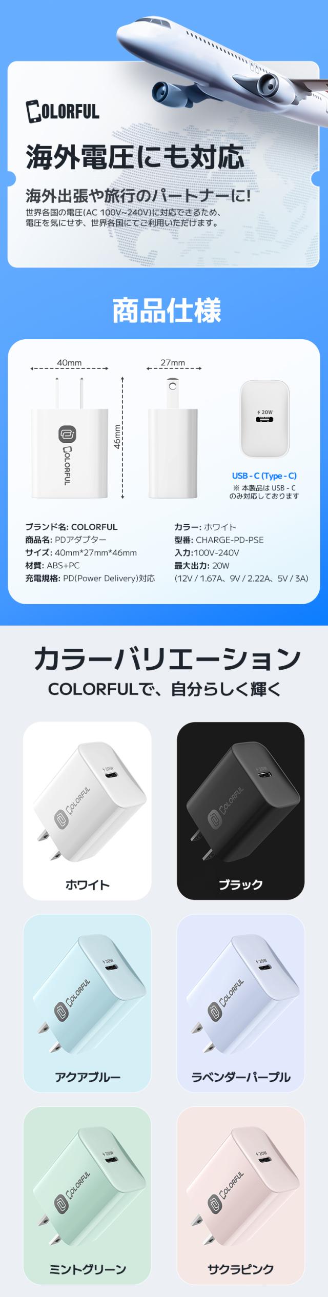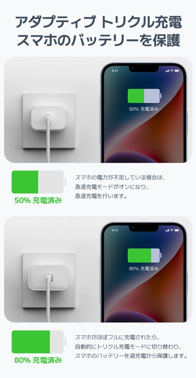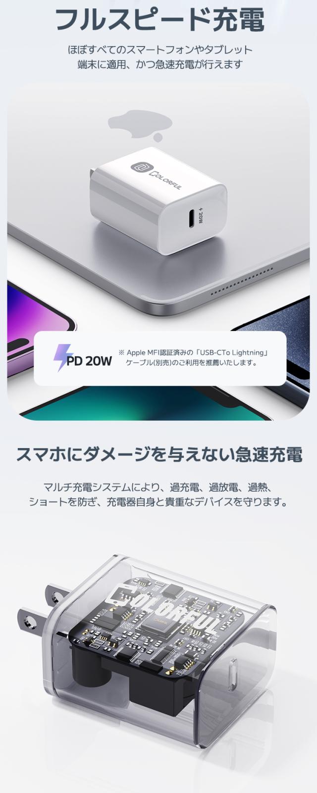 【30分間最大50%まで充電】PSE安全認証 PD 高速 充電器 20W