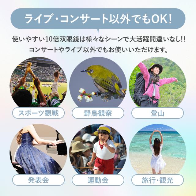 クリアな視界&広い視野で、コンサート、スポーツ観戦、バードウォッチングなど様々な場面で大活躍間違いなし!