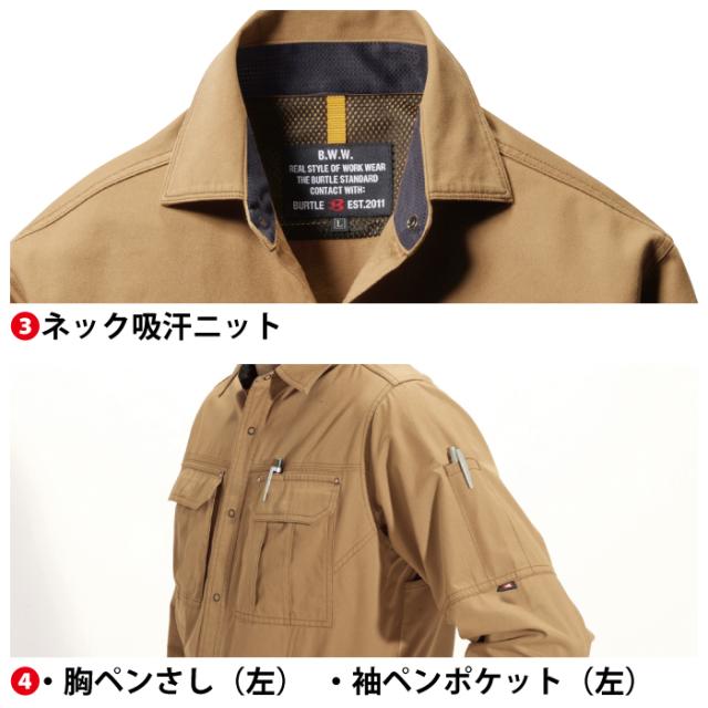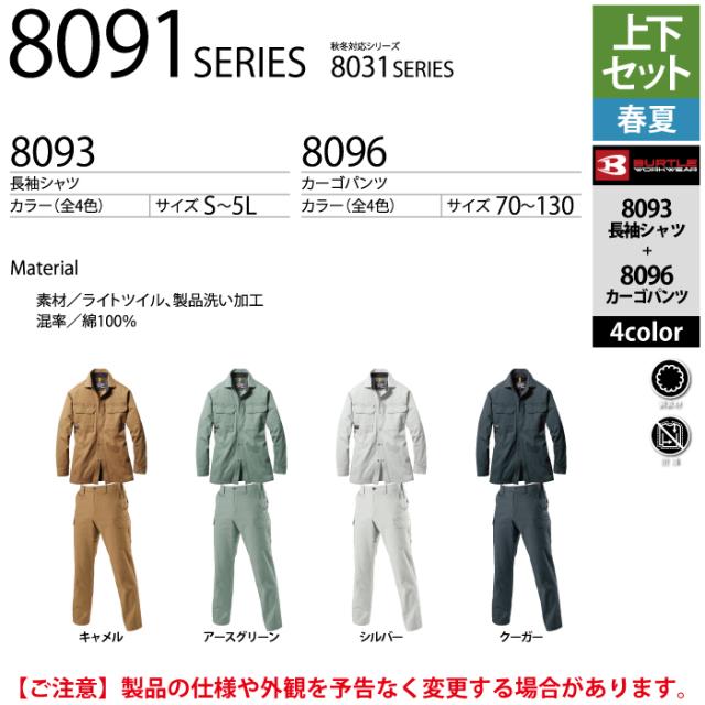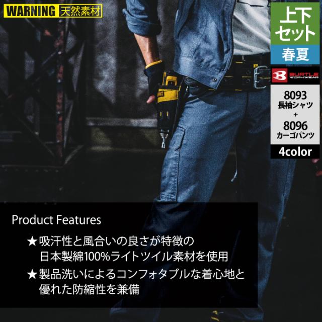バートル BURTLE 作業着 上下セット 8093長袖シャツと8096カーゴパンツ SS-LL 作業服 おしゃれ 春夏