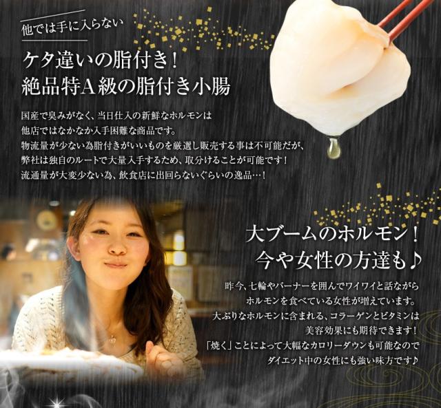 国産トロ小腸!スーパーなどでは絶対手に入らない超稀少商品!焼肉、BBQに絶品特Aランクのトロホルモンを是非!