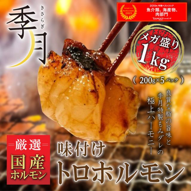 【1/10以降順次出荷】ホルモン バーベキュー BBQ 焼肉 肉 和牛 牛肉 味付けトロホルモン メガ盛り 1kg(200g×5パック)送料無料