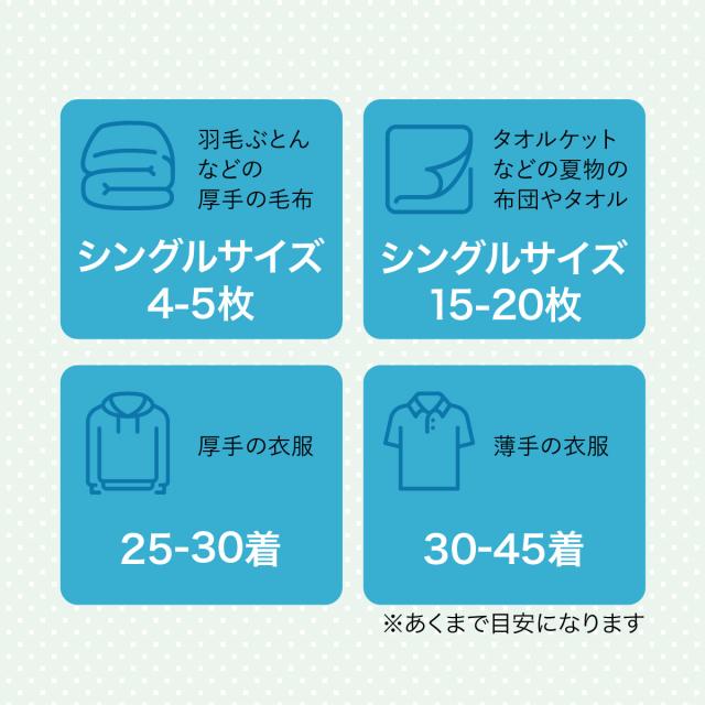 タオルケットや夏物布団であればシングルサイズ15〜20枚収納