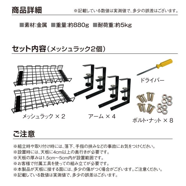 ケーブルラック 2個セット ケーブル 収納 テーブルトレー パソコンデスク 机 テーブル 引き出し メッシュラック 整理 机の下 m-rack01