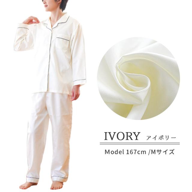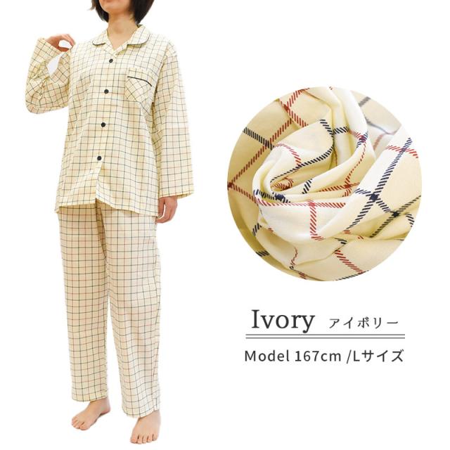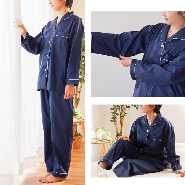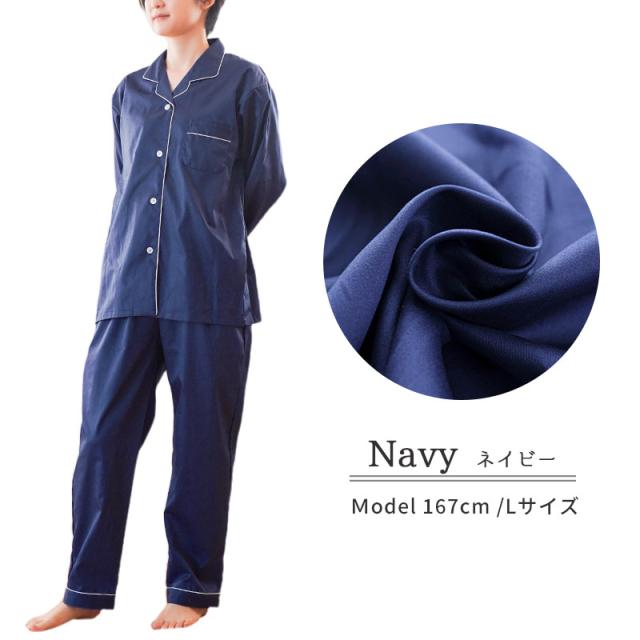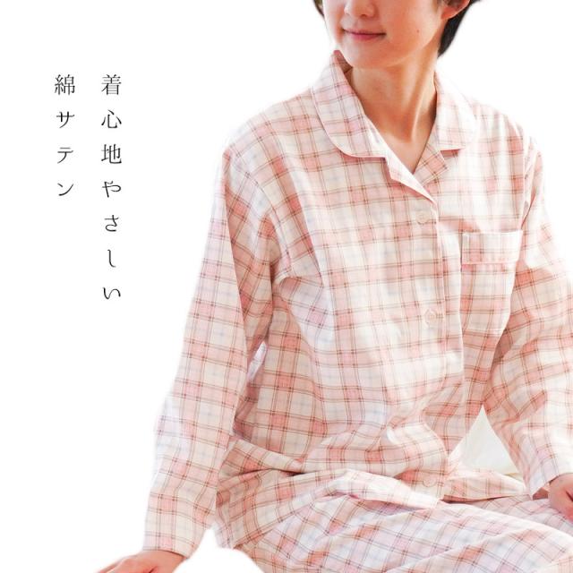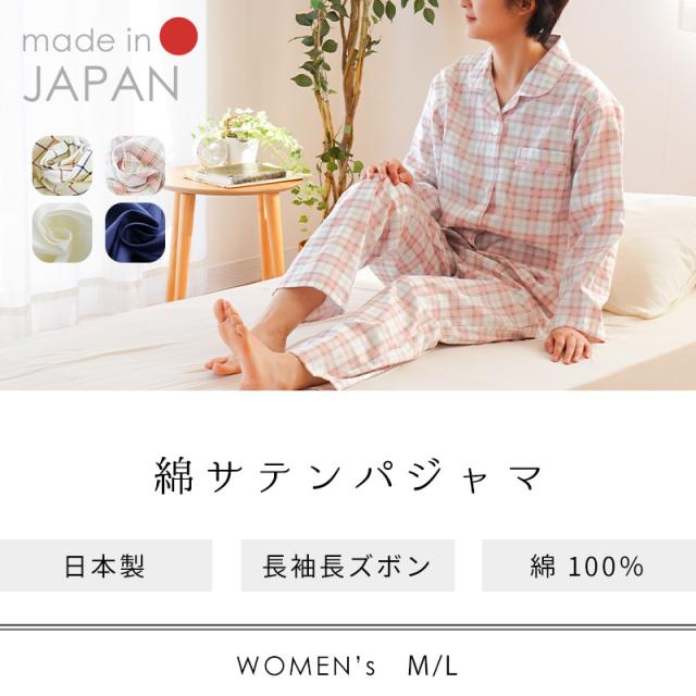 [ keyword | パジャマ レディース コットン 綿サテン 長袖 長ズボン 前開き 衿付き M L サイズ 国産 日本製 綿100% 春 夏 秋 婦人 女性 母の日 ホワイトデー 誕生日 プレゼント 贈り物 アイボリー ネイビー ピンク 無地 チェック柄 ]