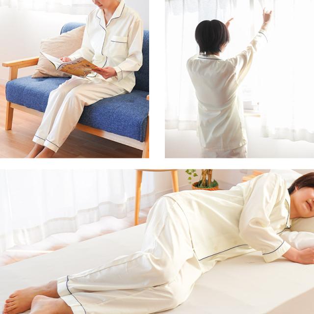 パジャマ レディース 遠州捺染 サテン 綿100% 長袖 長ズボン 前開き 衿付 M L 日本製 婦人ギフト 2025y5