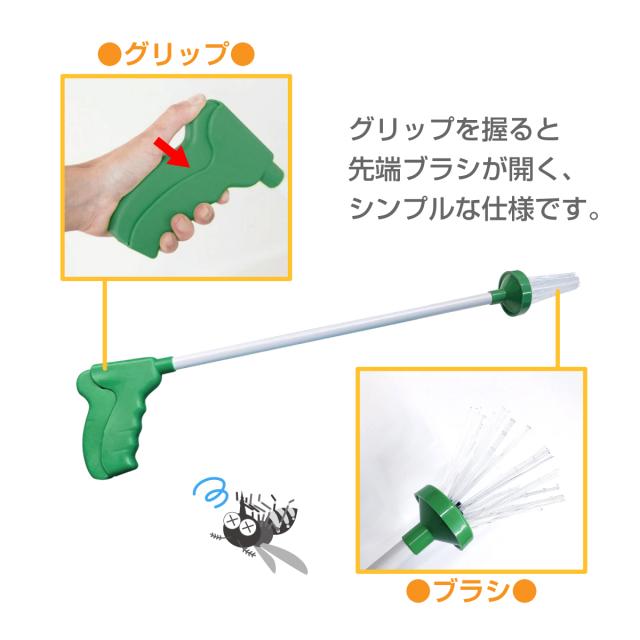 虫取りスティックは、グリップを握ると先端ブラシが開くシンプルな使用です。
