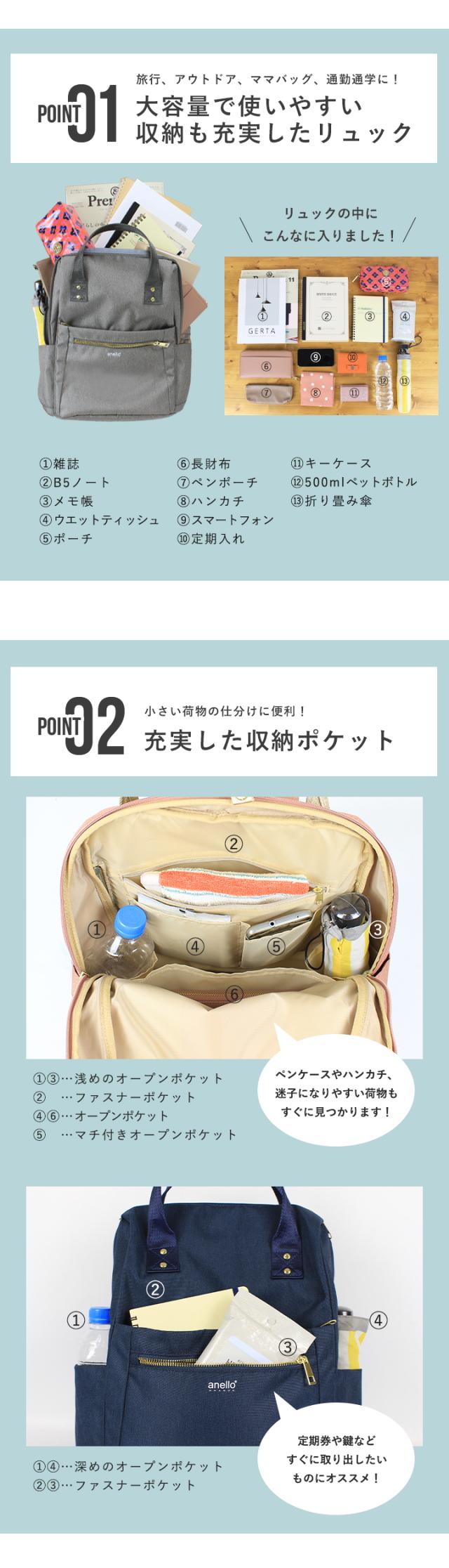 anello アネロ リュック リュックサック バッグパック バッグ 通勤 通学 マザーズバッグ 旅行 アウトドア 部活 10ポケット 多機能 多収納 レディース メンズ 男女 撥水 はっ水 おしゃれ 大人 カジュアル シンプル 無地 軽量 スタイルオンバック【c4131】
