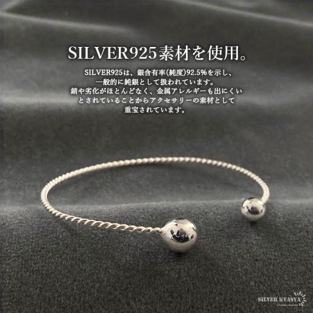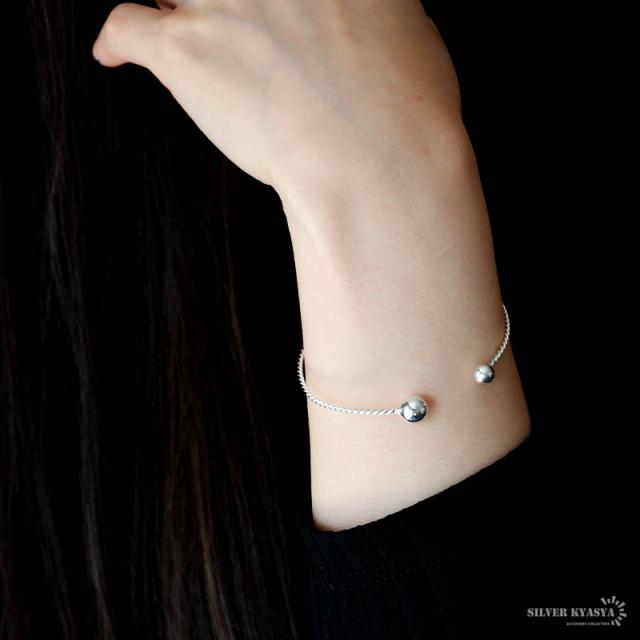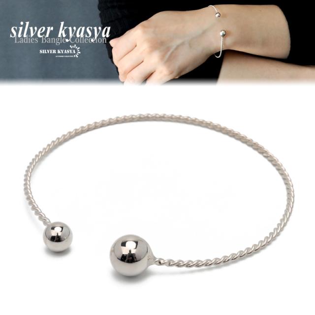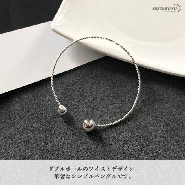 シルバー925 バングル レディース シルバー S925 レディースバングル ダブルボール ツイスト 細身 華奢 デイリー silver 銀色 金属アレルギー対応